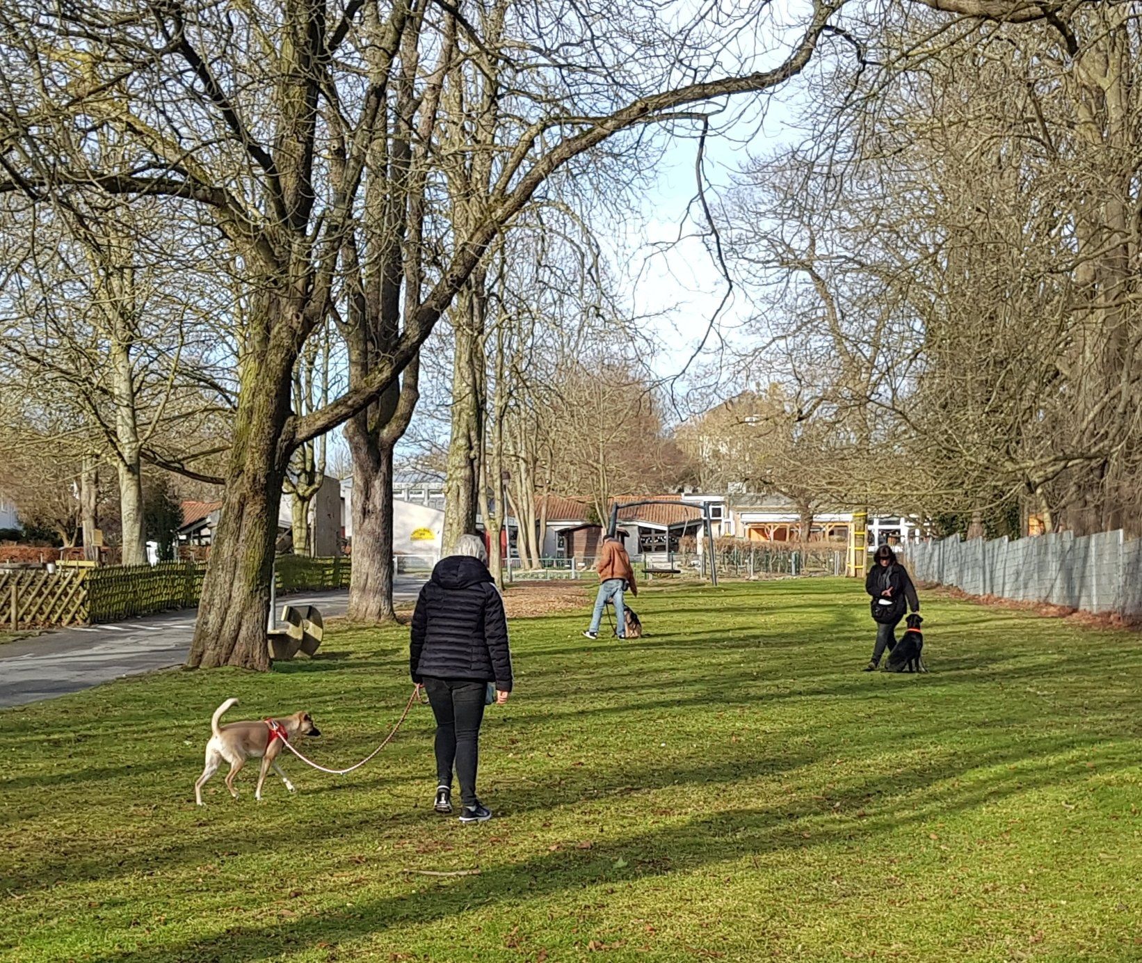 Die praktische Sachkundeprüfung findet in einer ablenkungsarmen Umgebung (Grünanlage)